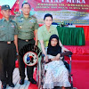 Lanjut dari pengecekan yang dilakukan temui dibarisan belakang ada salah satu anggota Persit yang mengalami sakit stroke dan berada diatas kursi roda dan ikut hadir mendengarkan pengarahan Pangdam Wirabuana.
