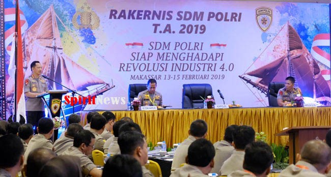 SpiritNews.com.- Kapolri Jenderal HM Tito Karnavian, saat membuka Rapat Kerja Teknis (Rakernis) Sumber Daya Manusia (SDM) Polri, di Hotel Swissbell, jalan Pasar Ikan, Makassar, Rabu kemarin.